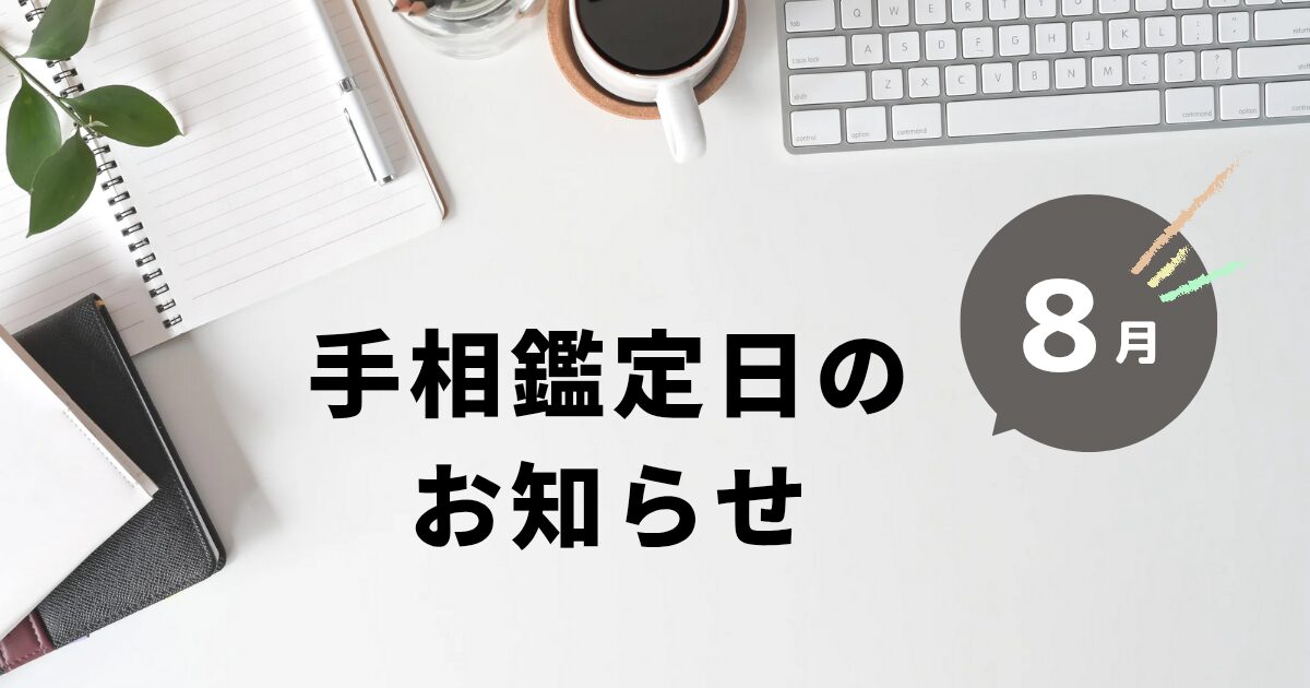 毎日暑い日が続いていますが、いかがお過ごしですか?8月の手相鑑定スケジュールをお知らせします。